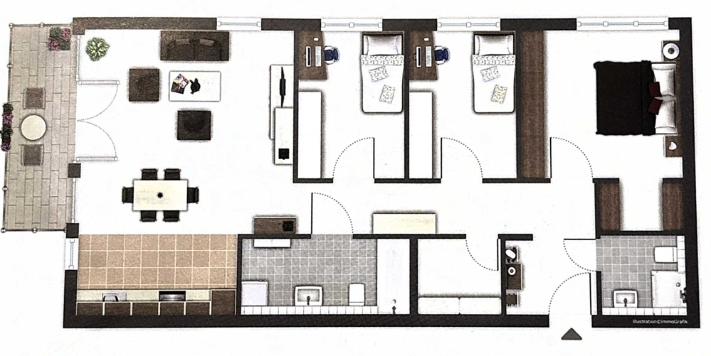 Diese exklusive 4-Zimmer-Wohnung begeistert durch ihre großzügige Raumaufteilung, lichtdurchflutete Architektur und ihre hochwertige Ausstattung. Dank des schönen Balkons mit Süd-West-Ausrichtung genießen Sie hier Wohnkomfort auf höchstem Niveau - mit Penthouse-Charakter. Das Herzstück der Wohnung bildet der offene Wohn- und Essbereich mit Küche, der durch zahlreiche bodentiefe Fenster eine außergewöhnlich helle und einladende Atmosphäre schafft. Edles Parkett unterstreicht das hochwertige Ambiente. Das Schlafzimmer überzeugt mit einem praktischen Ankleidebereich und bietet viel Platz für Privatsphäre und Komfort. Zwei weitere Zimmer eignen sich ideal als Kinder-, Arbeits- oder Gästezimmer. Abgerundet wird das Raumangebot durch ein stilvolles Badezimmer mit großer, begehbarer Dusche, WC, Bidet sowie ein separates Gäste-WC. Zwei Tiefgaragenstellplätze sind im Angebot enthalten und garantieren bequemes Parken. Zur Wohnung gehört ein großer Kellerraum. Der Fahrradkeller wird gemeinschaftlich genutzt. Die Wohnung ist bezugsfrei. Das Hausgeld beträgt aktuell lt. Wirtschaftsplan 323 Euro monatlich und ist wie folgt aufgeteilt: - auf den Mieter umlegbar rund 166 Euro monatlich - nicht umlegbar rund 70 Euro monatlich - Rücklagen rund 87 Euro monatlich Gerne biete ich Ihnen einen Besichtigungstermin an. Ich freue mich über Ihren Anruf oder Ihre E-Mail.