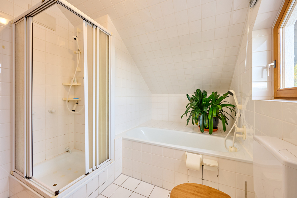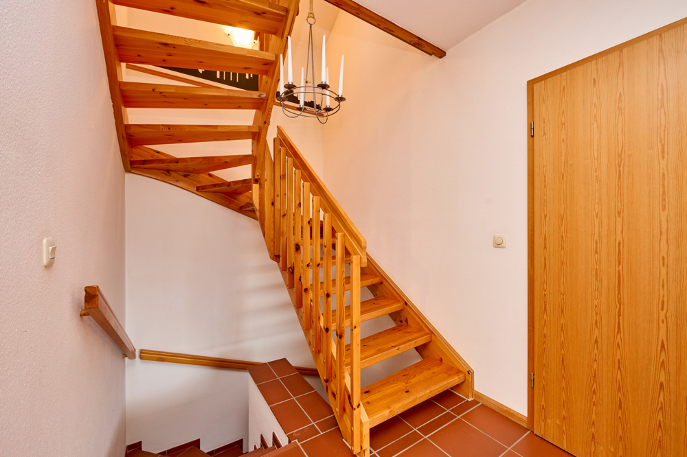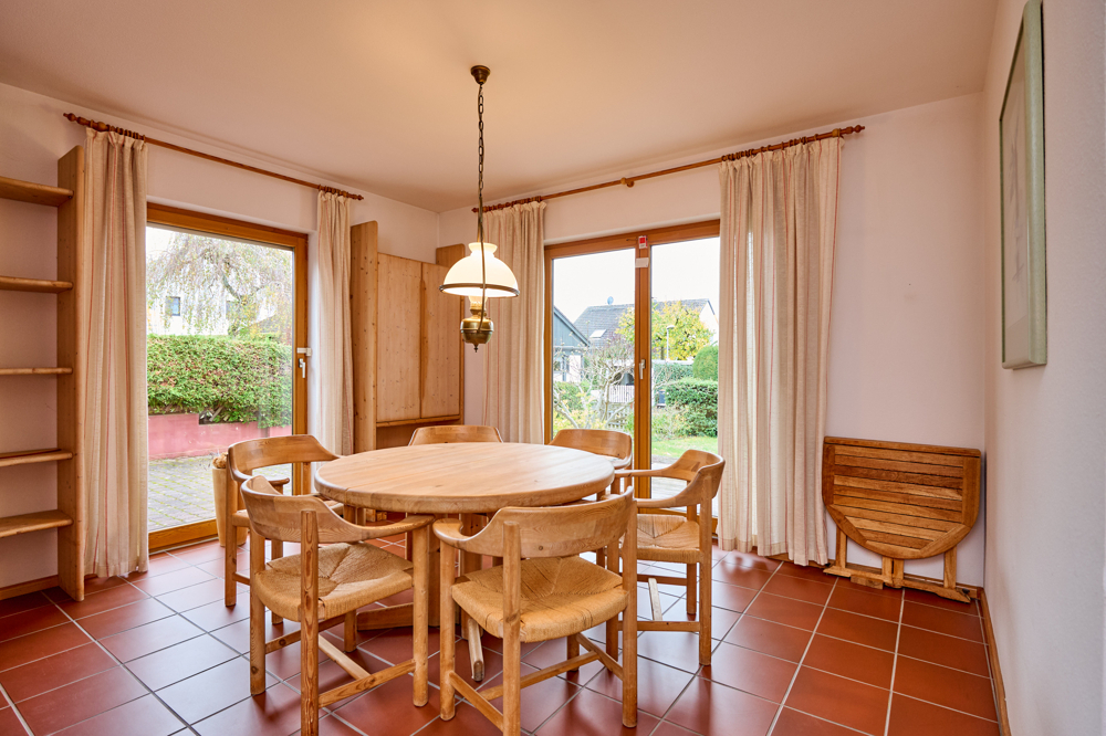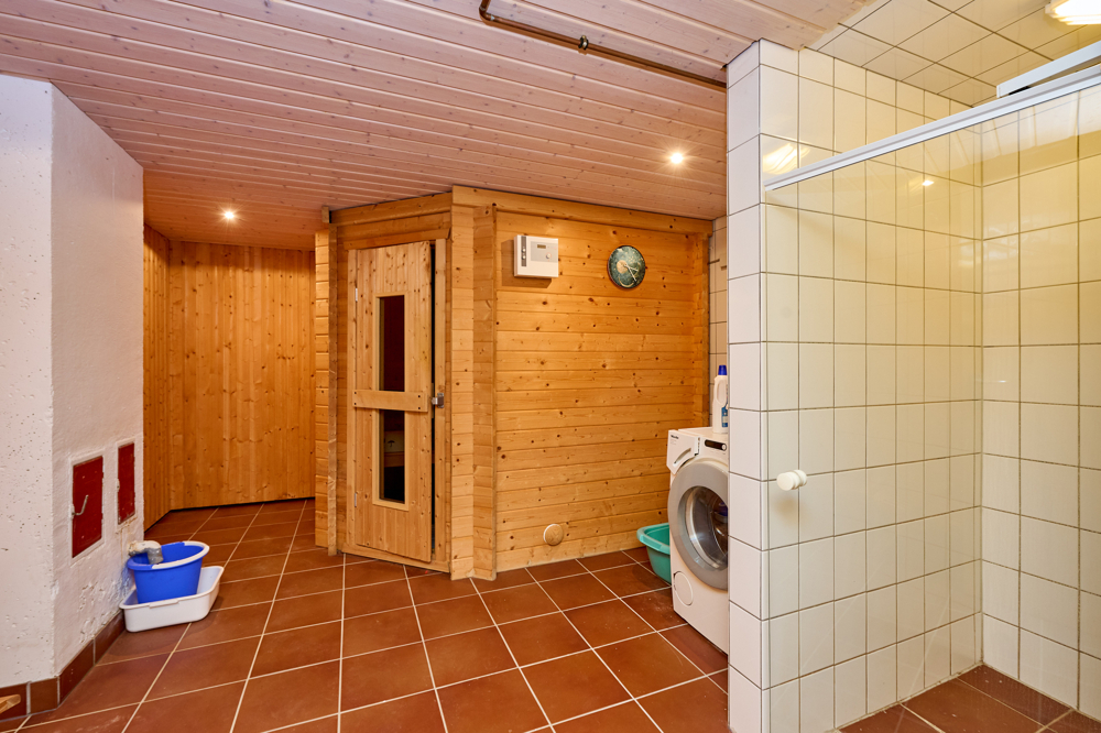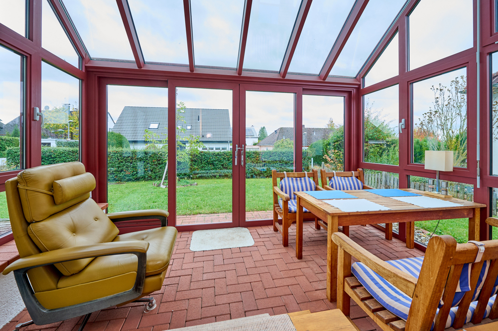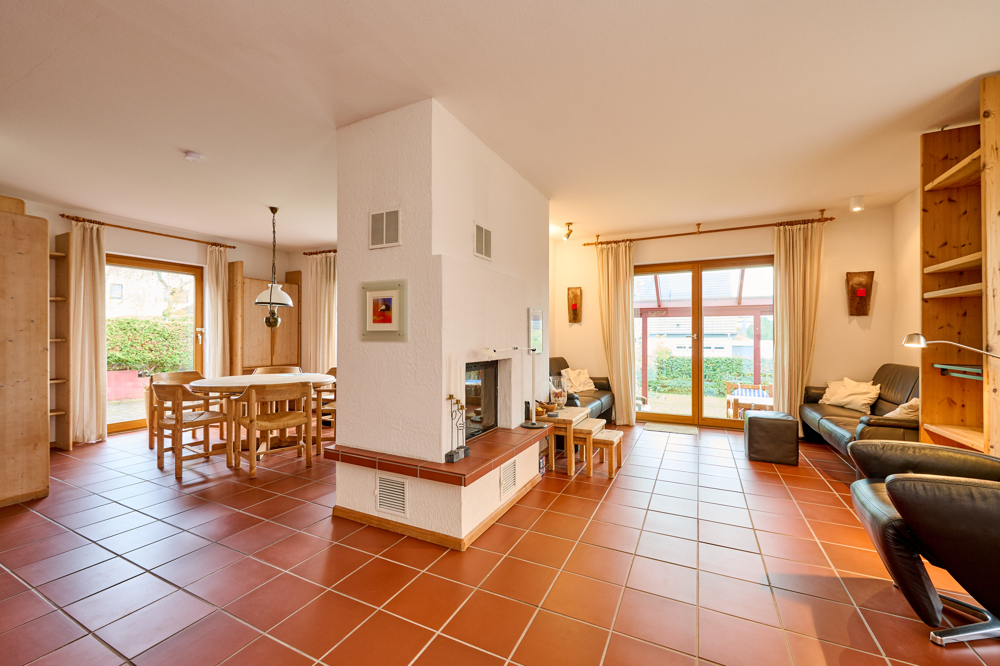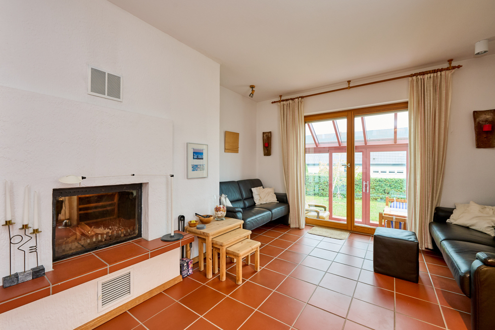 Die Ausstattung ist wie folgt: - Heller Wintergarten mit direktem Gartenzugang - Offener Kamin - Sauna - Doppelt verglaste Fenster mit Rollläden - Fußbodenheizung - 2 PKW-Stellplätze - Carport - Holzgeräteschuppen hinter dem Carport - Schöner Garten - Ruhige Sackgassenlage ohne Durchgangsverkehr