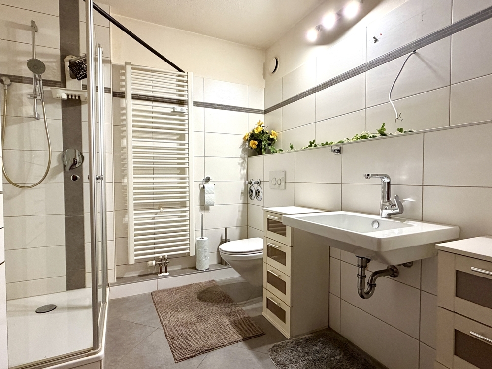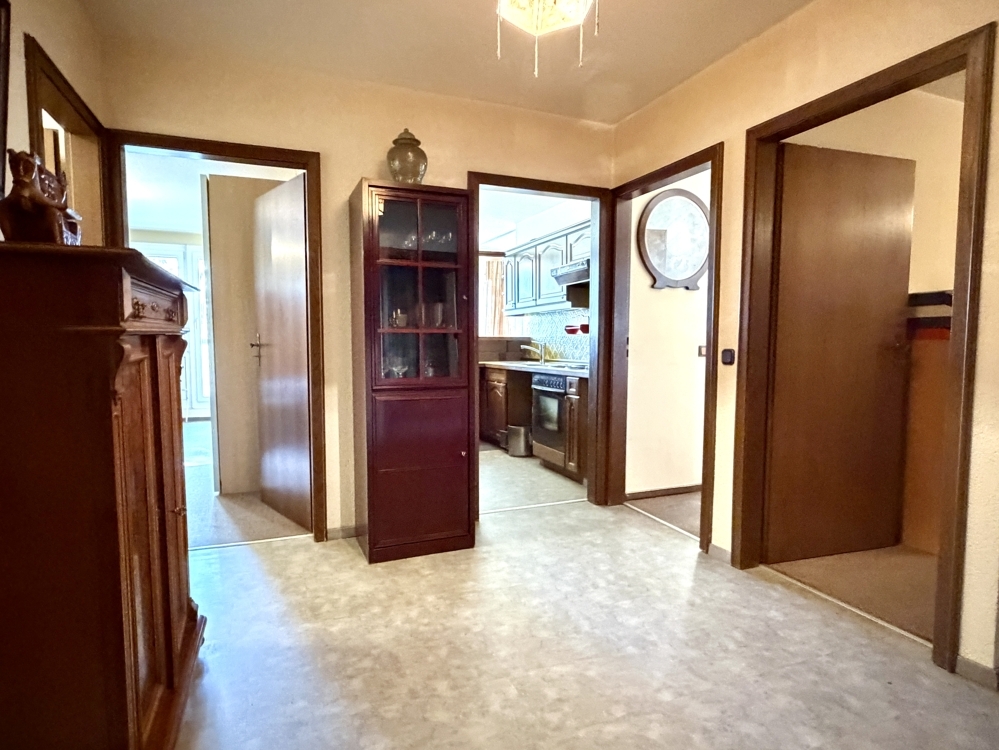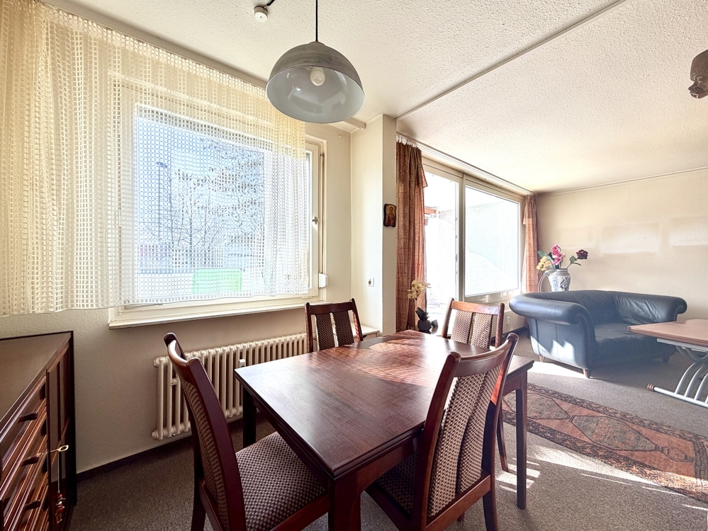 Die Ausstattung ist wie folgt: - Fenster mit 2-fach Verglasung aus dem Jahr 2007 - Modern Bad - Im Flur liegt Vinyl, das Bad ist gefliest, in den übrigen Räumen wurde Teppichboden verlegt - Küche ist mit einer praktischen Durchreiche zum Essbereich verbunden - Separates Gäste-WC - Highlight der Wohnung ist die großzügige Terrasse mit Südausrichtung